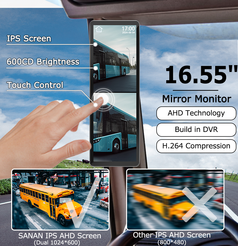16.55" Strong Light Suppression Digital BSD Dashcam Auto2CH DVR Voice Alert Sony 1080P Bus Truck Virtual Rearview Mirror Camera