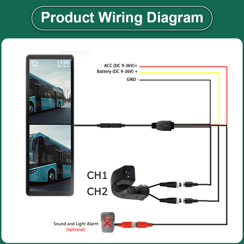 All 2 channels support BSD blind zone warning. During driving or reversing, the cameras can detect dangerous moving objects around the vehicle through a unique AI algorithm and display them on the screen to warn the driver to drive safely. You can configure the BSD alarm system according to your own needs. The BSD voice alert is in Korean, Chinese, or Japanese, which also can be set.